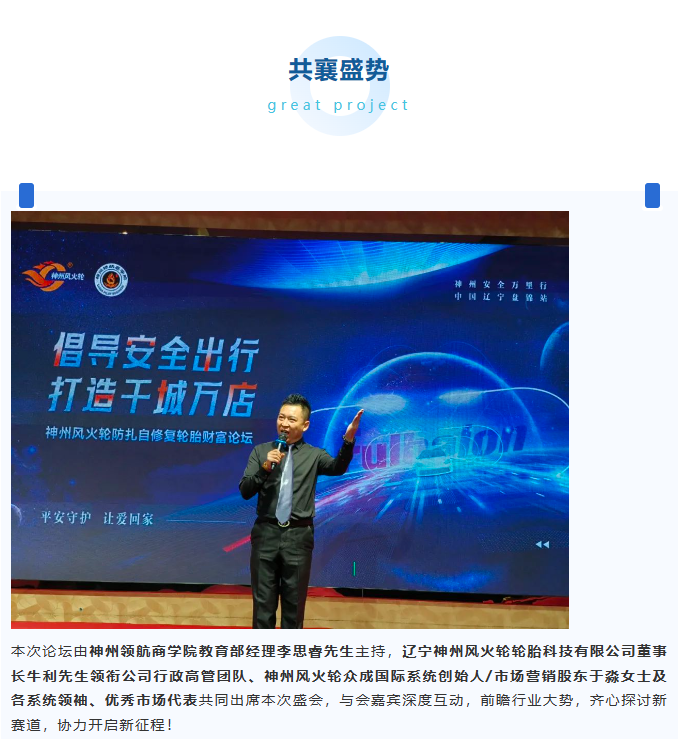 【盤(pán)錦站】“倡導(dǎo)安全出行,打造千城萬(wàn)店”神州風(fēng)火輪智能防扎自修復(fù)輪胎財(cái)富論壇